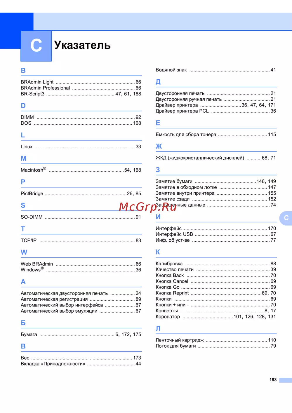 ![Brother HL-4050CDN [201/202] Указатель](/views2/1025218/page201/bgc9.png)