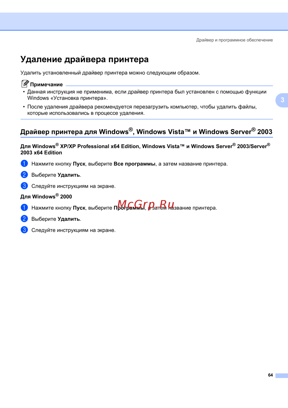 Brother HL-4050CDN — инструкция по удалению драйвера принтера для Windows [72/202]