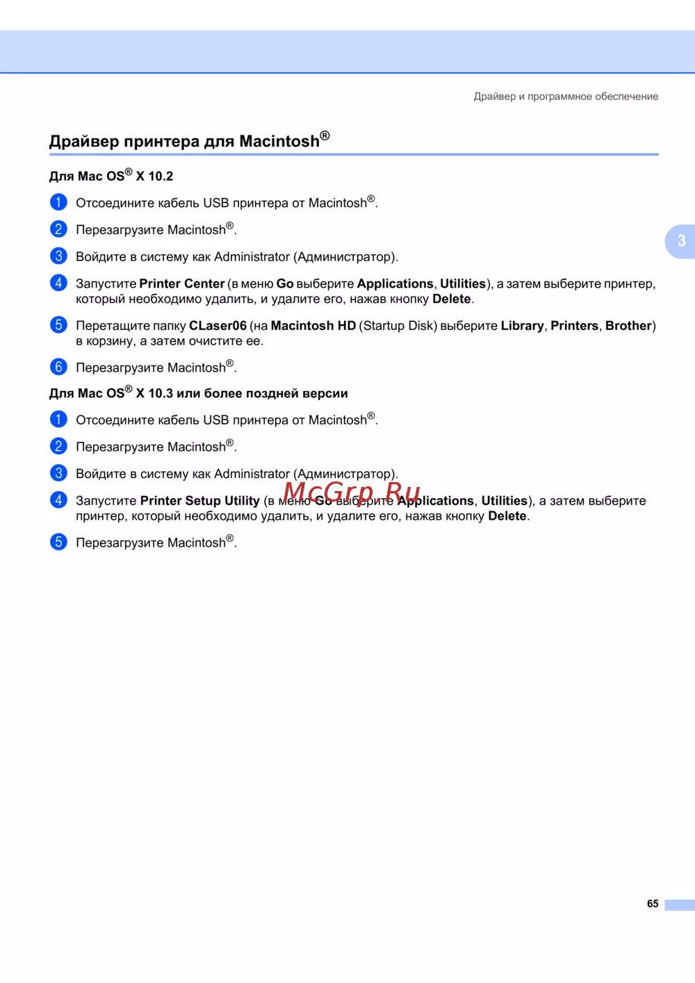 Brother HL-4050CDN — инструкция по удалению драйвера принтера на Mac OS [73/202]
