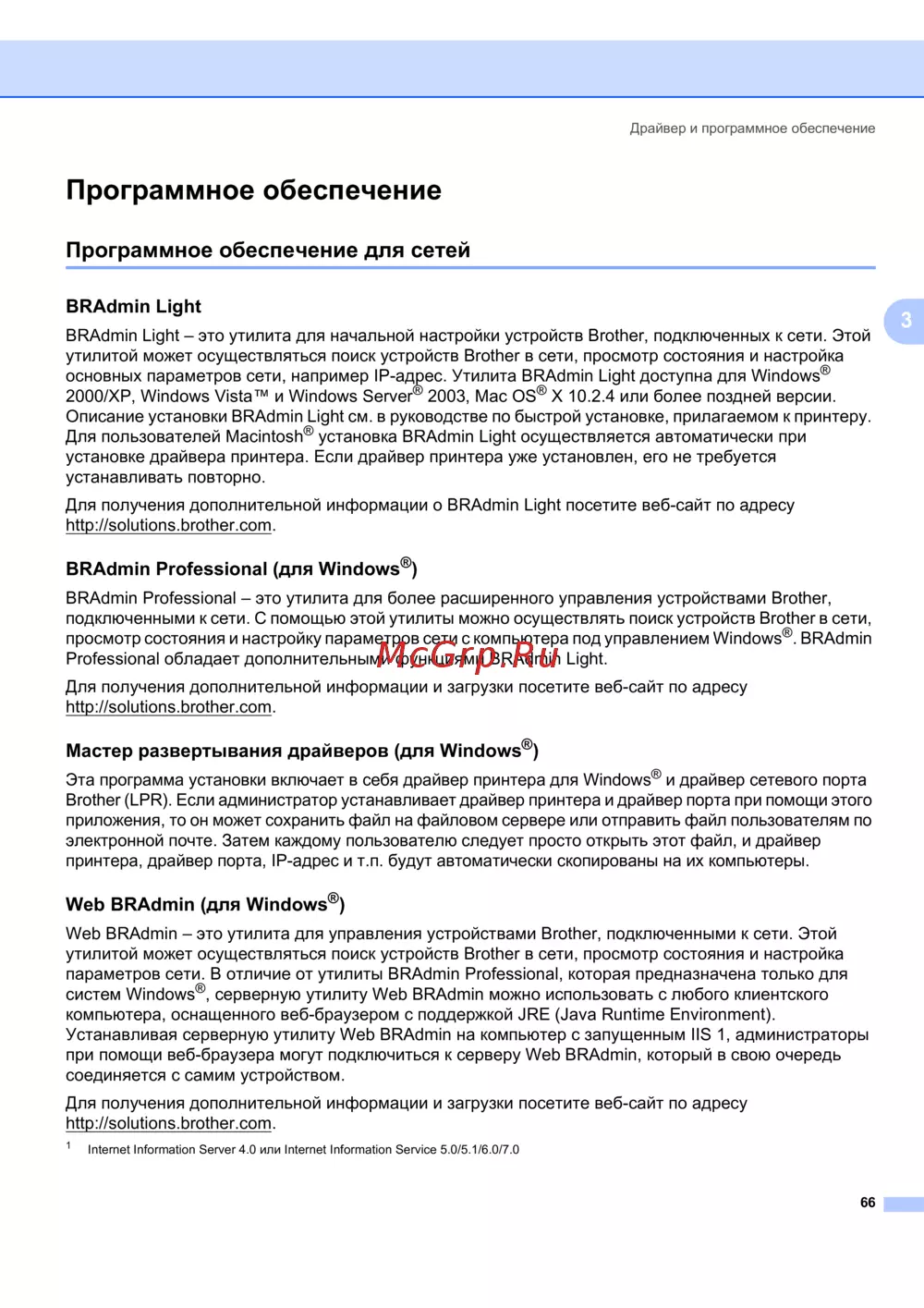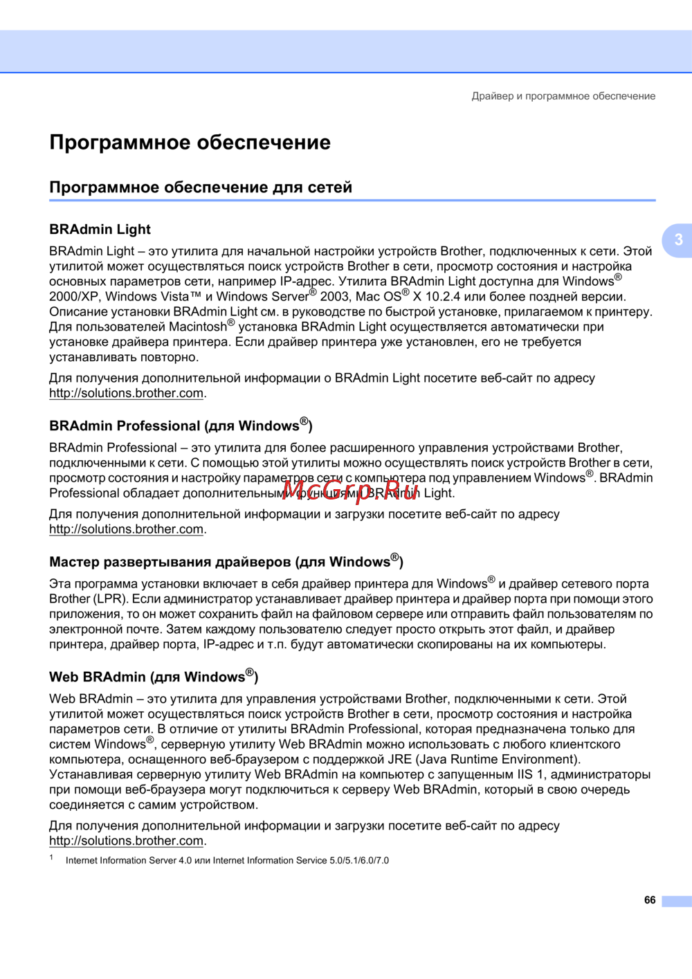 основных параметров сети, например IP-адрес. Утилита BRAdmin Light доступна для Windows