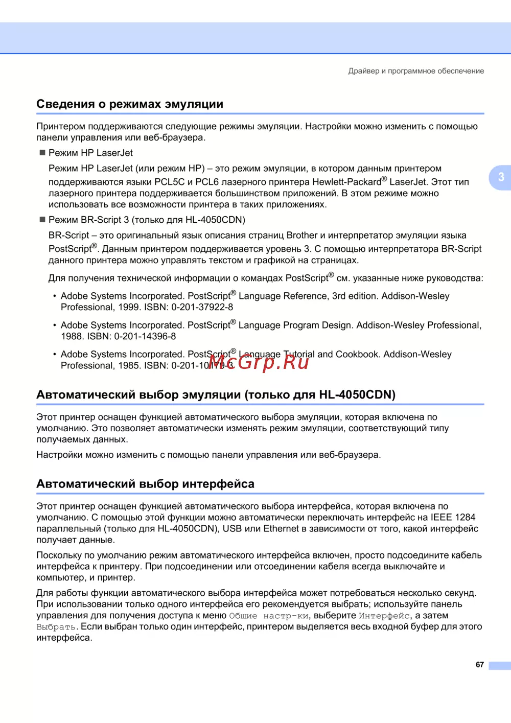 Автоматический выбор эмуляции (только для HL-4050CDN) 3