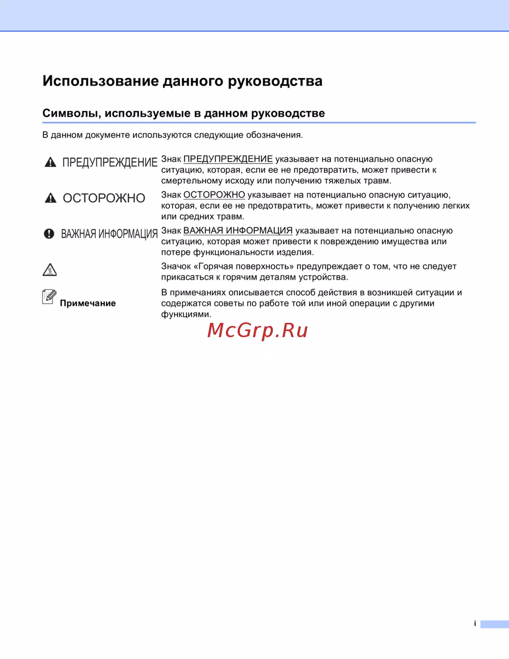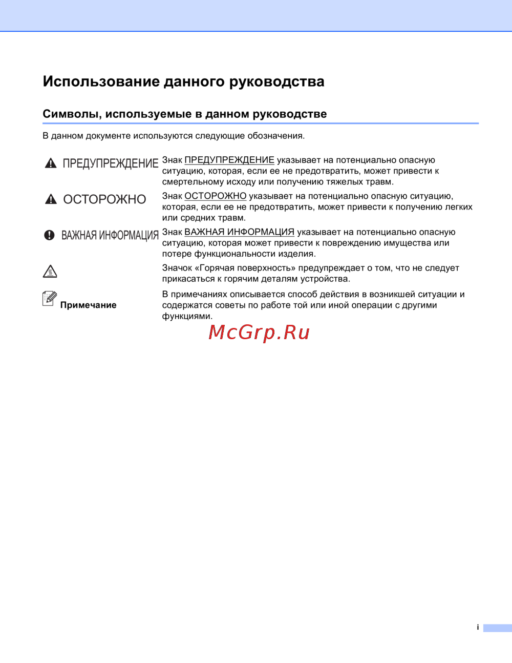 Brother HL-4140CN — руководство по безопасности: символы и их значения [2/214]