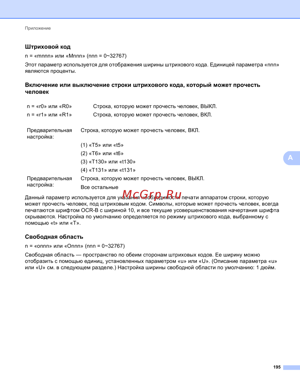 - Краткое руководство по командам управления штриховым кодом p.198