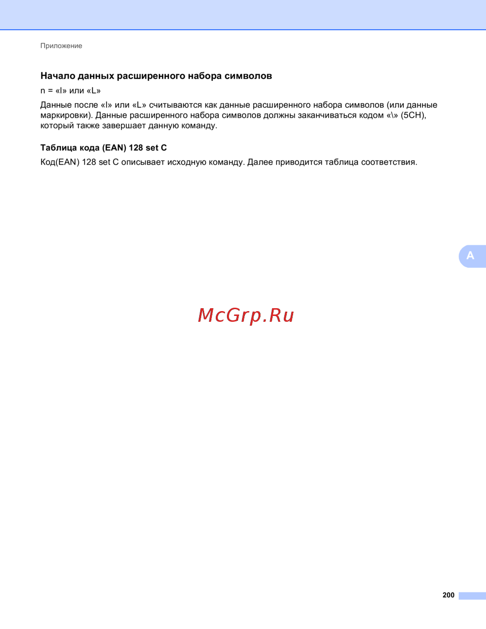 - Смещение по оси y штрихового кода и расширенного набора символов p.201