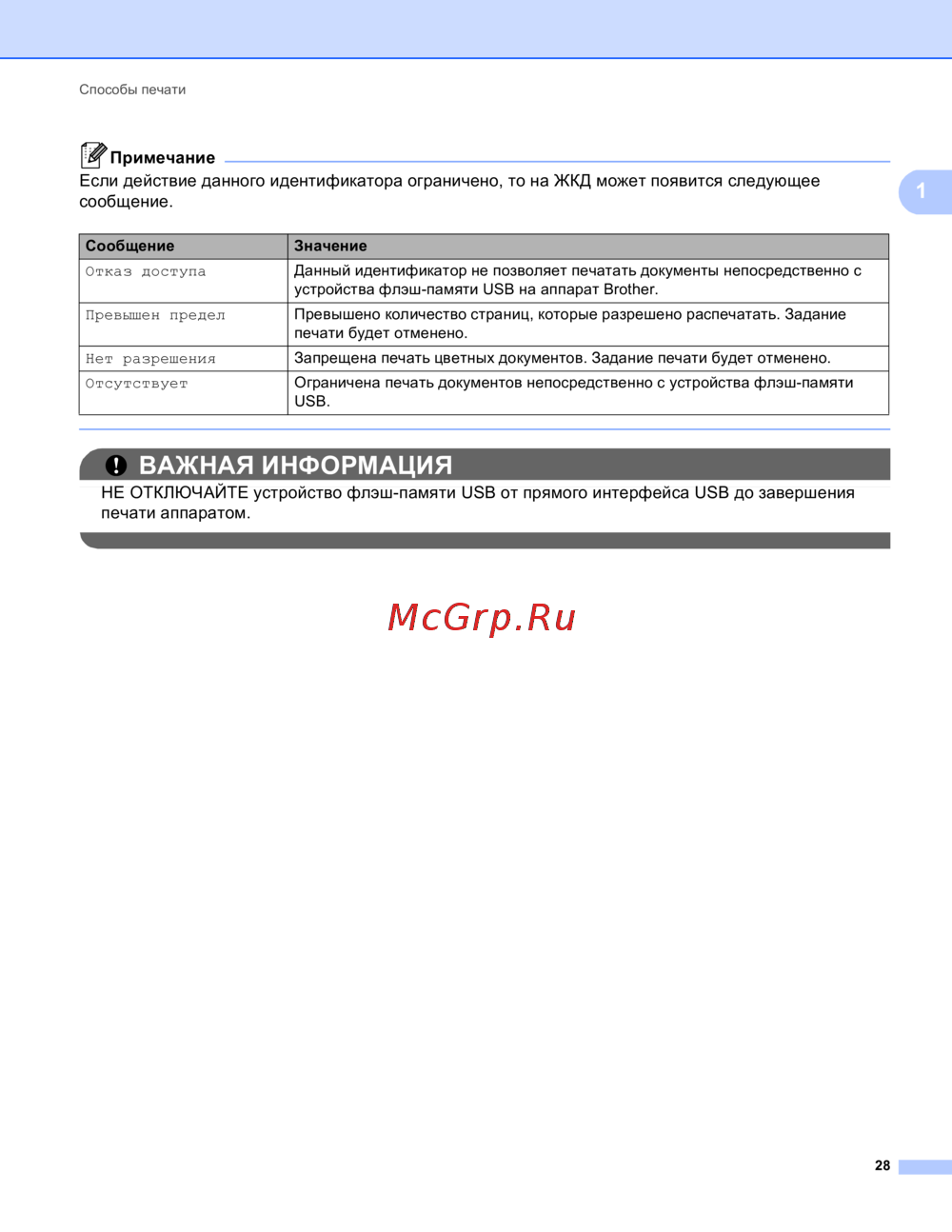 устройства флэш-памяти USB на аппарат Brother.