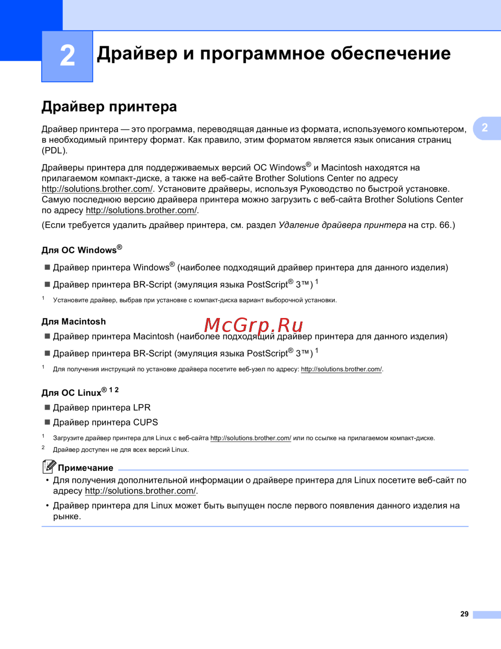 Самую последнюю версию драйвера принтера можно загрузить с веб-сайта Brother Solutions Center