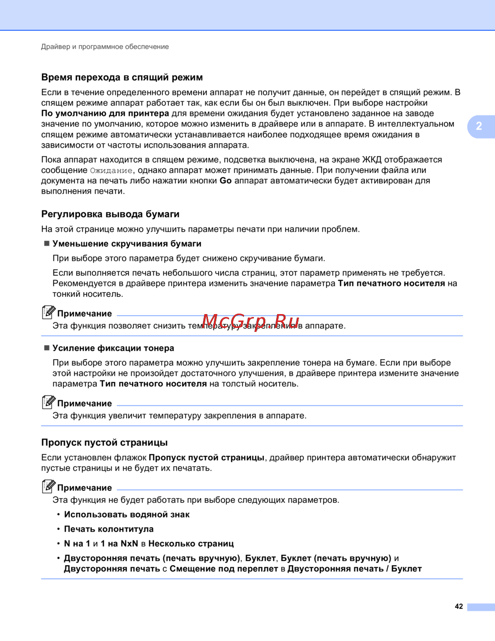 Если выполняется печать небольшого числа страниц, этот параметр применять не требуется.
