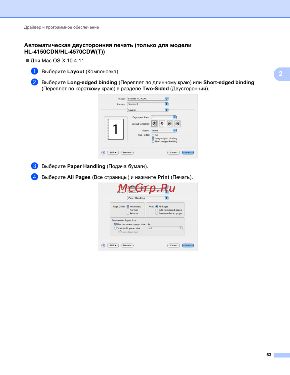 - Автоматическая двусторонняя печать только hl 4150cdn hl 4570cdw t p.26