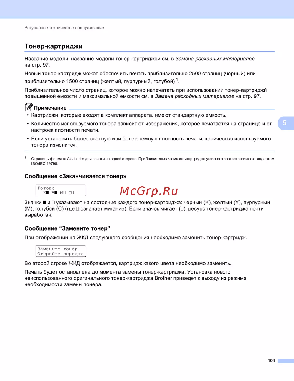 Сообщение “Замените тонер” 5