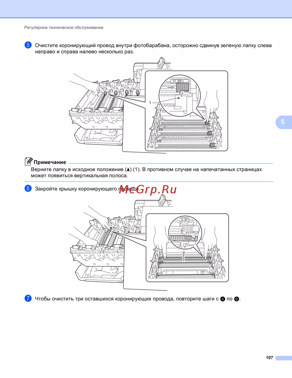 f Закройте крышку коронирующего провода.