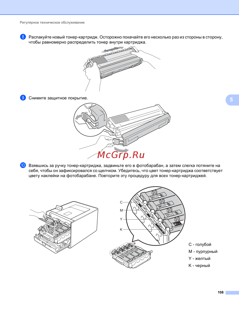 Brother HL-4570CDW — как правильно установить тонер-картридж для принтера [113/214]