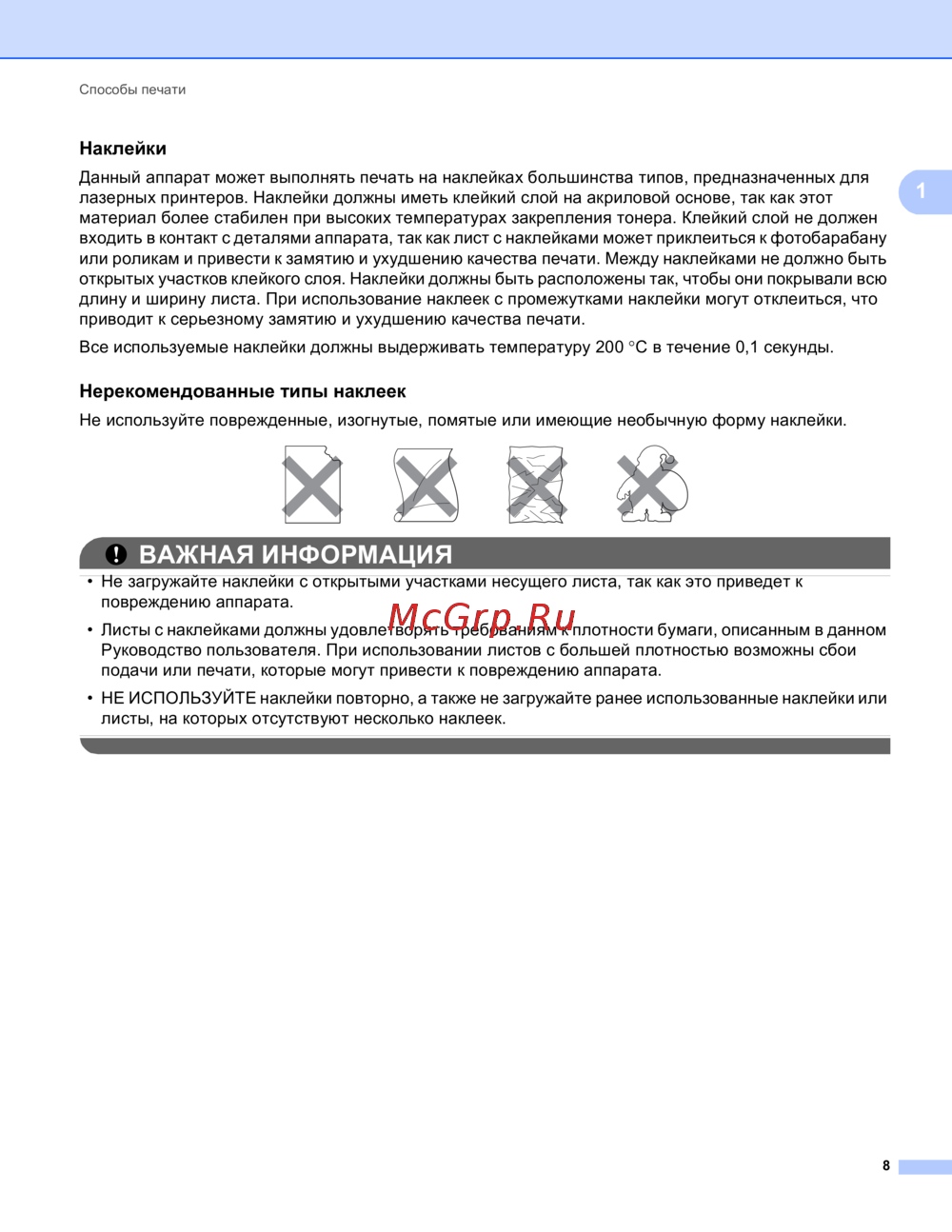 Brother HL-4570CDW — рекомендации по печати на наклейках для лазерных принтеров [13/214]