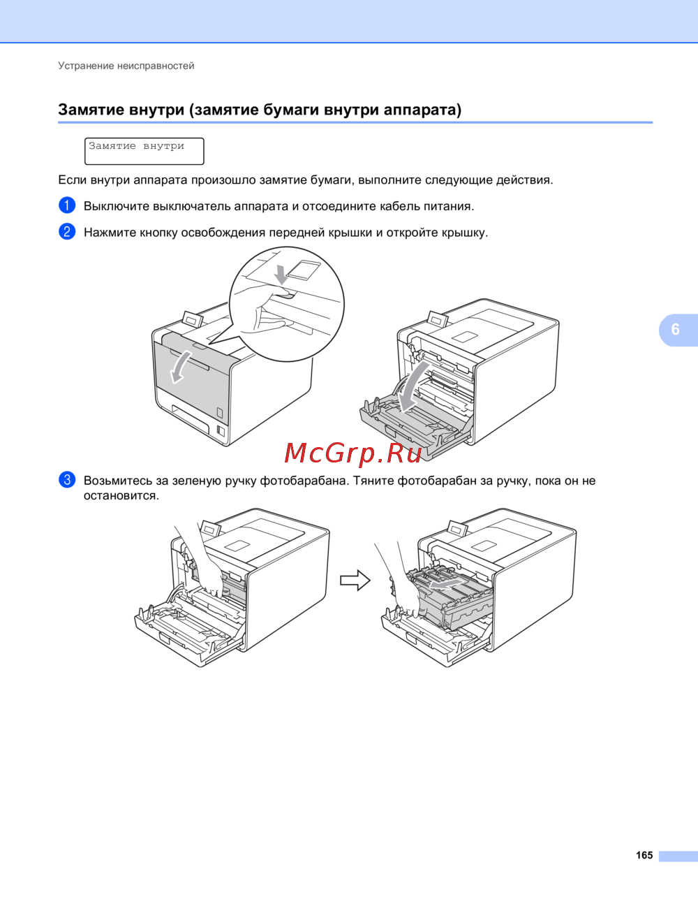 Brother HL-4570CDW [170/214] Замятие внутри замятие бумаги внутри аппарата