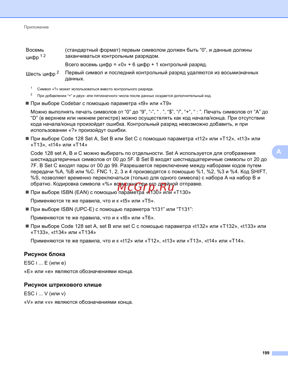 - Смещение по оси y штрихового кода и расширенного набора символов p.201