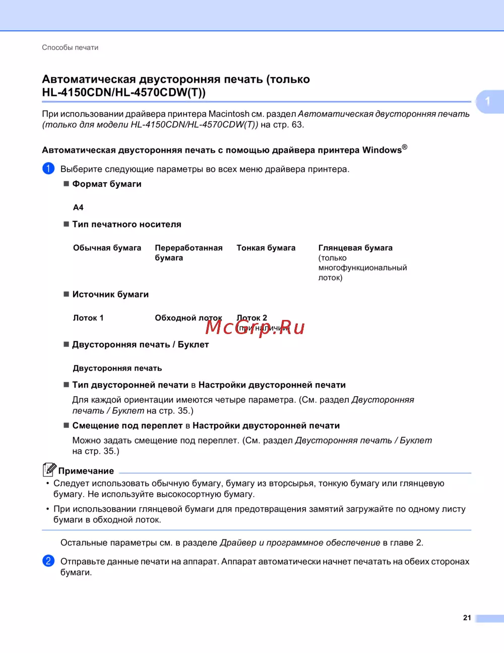 Brother HL-4570CDW — способы автоматической двусторонней печати на принтерах [26/214]