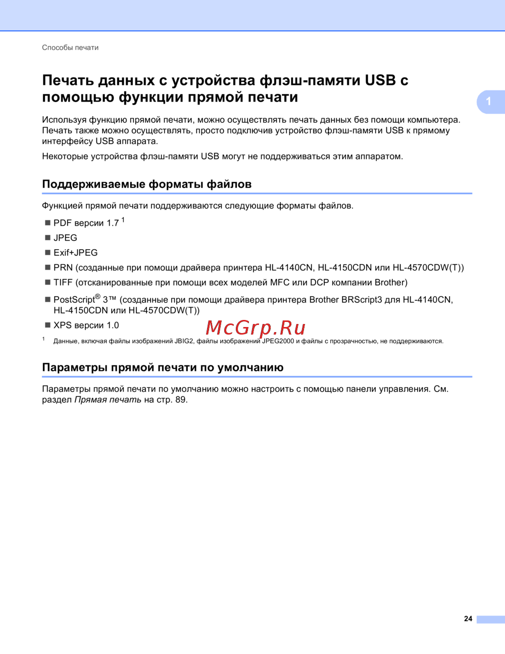 Brother HL-4570CDW — способы прямой печати с USB-устройств без компьютера [29/214]