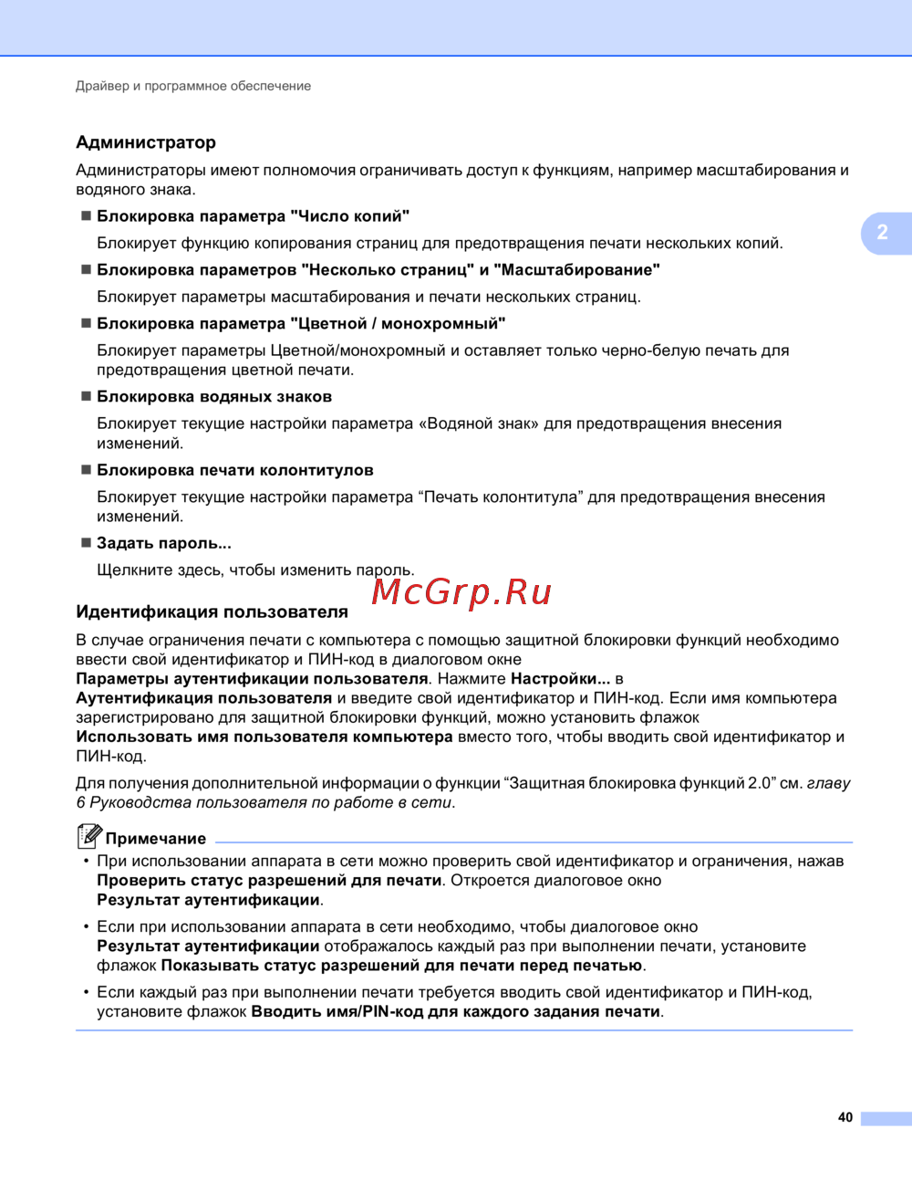 Brother HL-4570CDW — настройки безопасности печати и аутентификации пользователя [45/214]