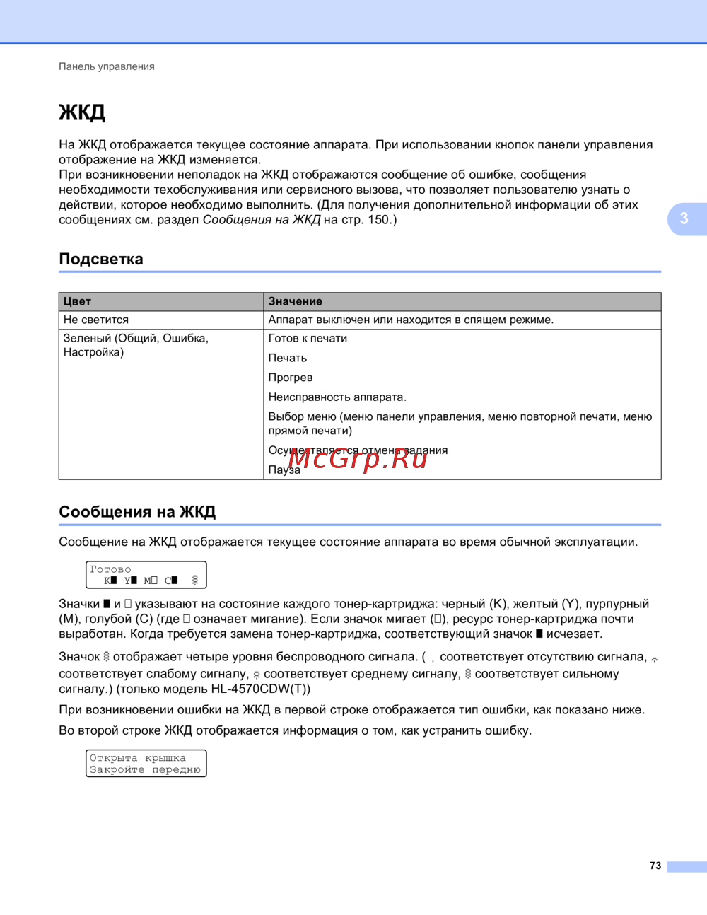 Brother HL-4570CDW — панель управления и ЖКД: управление состоянием аппарата [78/214]
