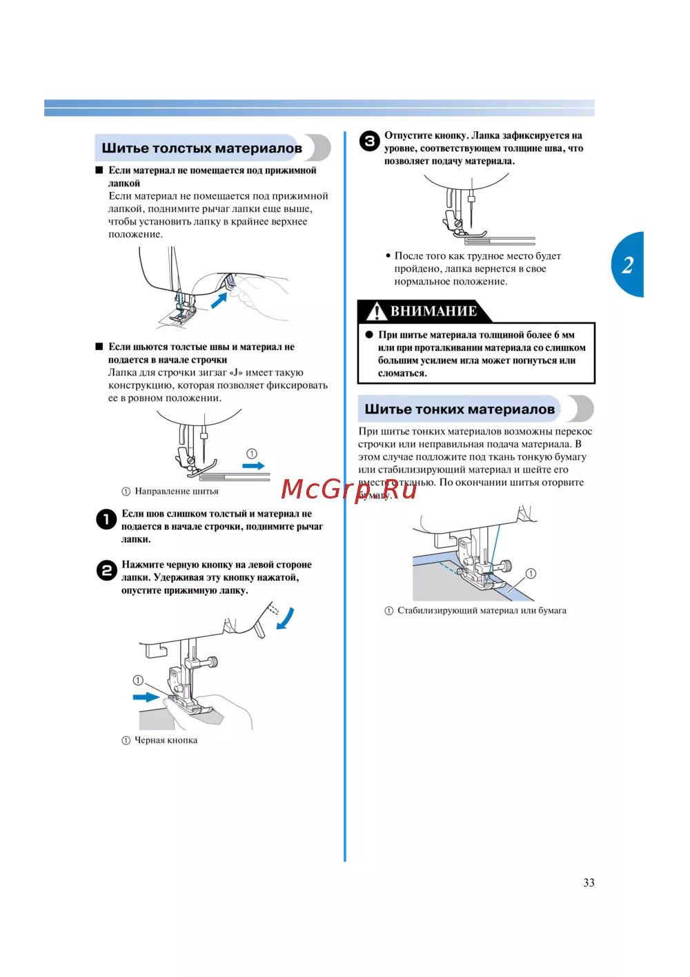 Brother BC-2100 — советы по шитью толстых и тонких материалов для начинающих [36/75]