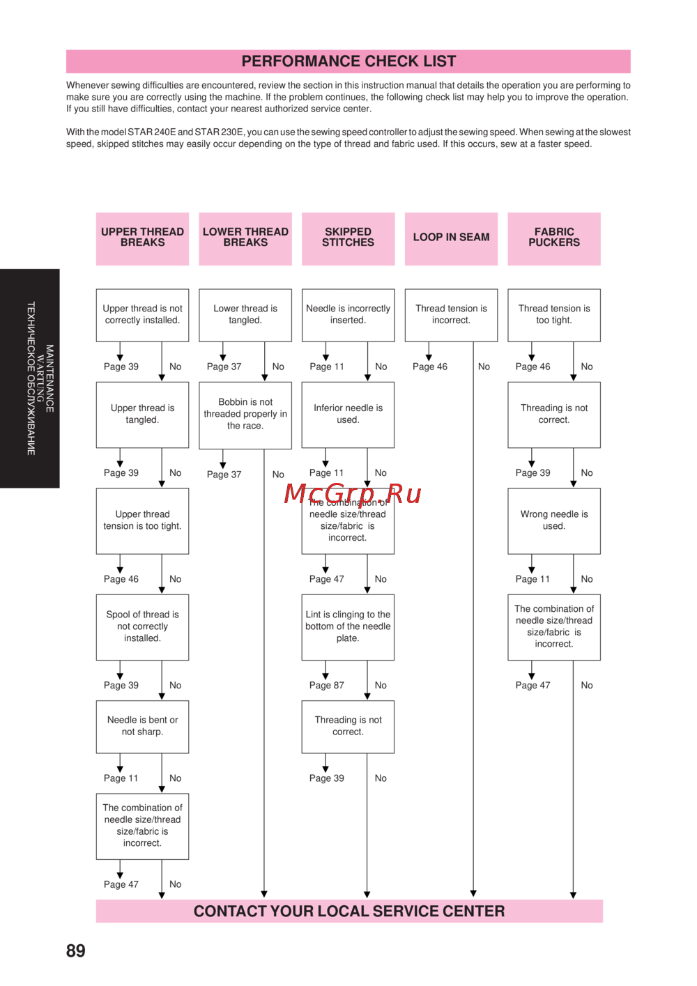 - Неправильная подача ткани p.106