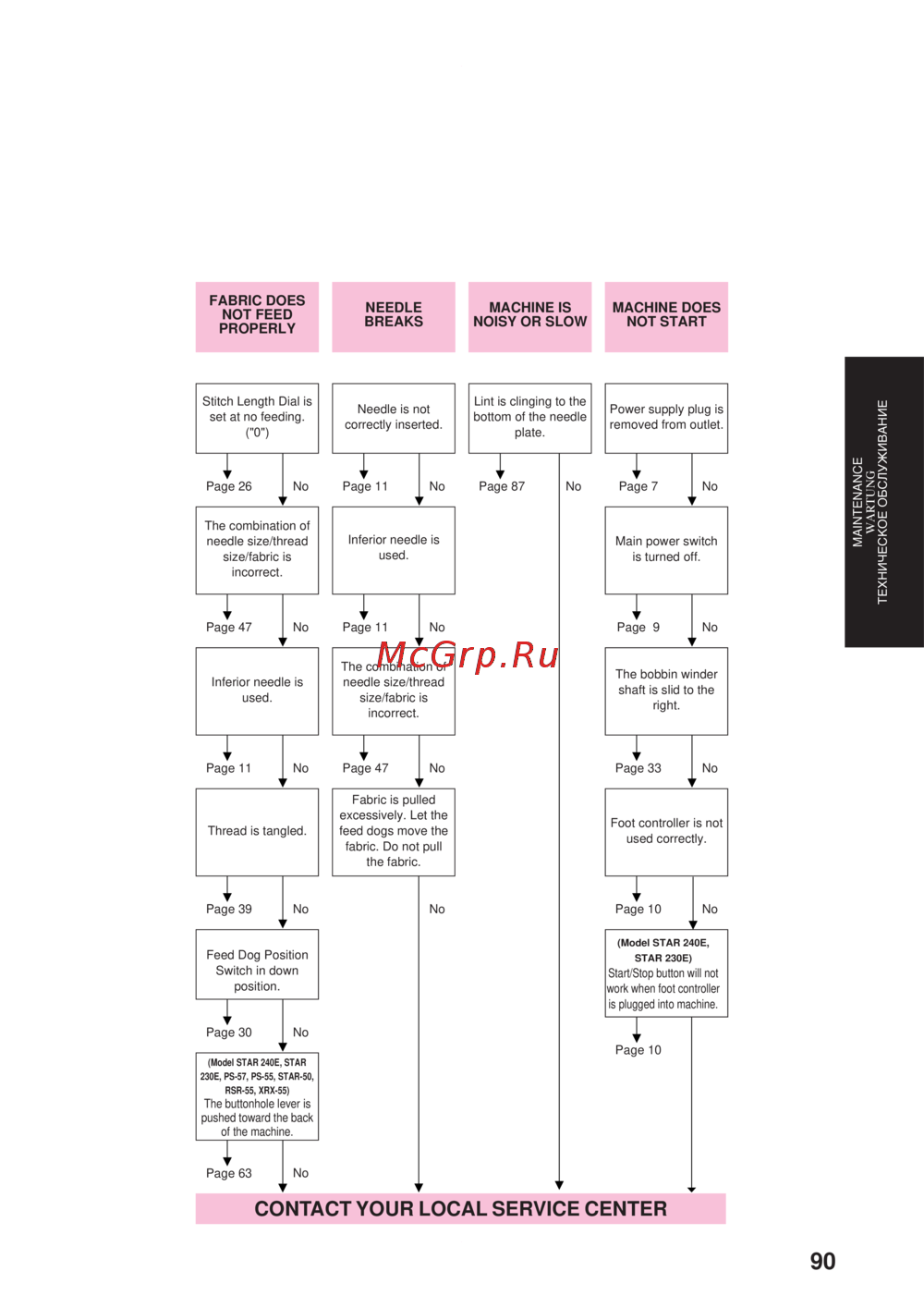 - Обрыв нижней нитки обрыв верхней нитки p.105