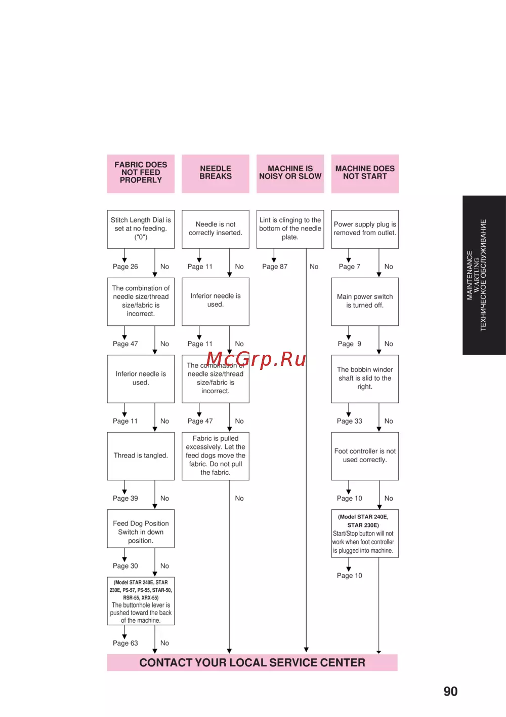 - Обратитесь за дополнительной консультацией в ближайший центр технического обслуживания p.106