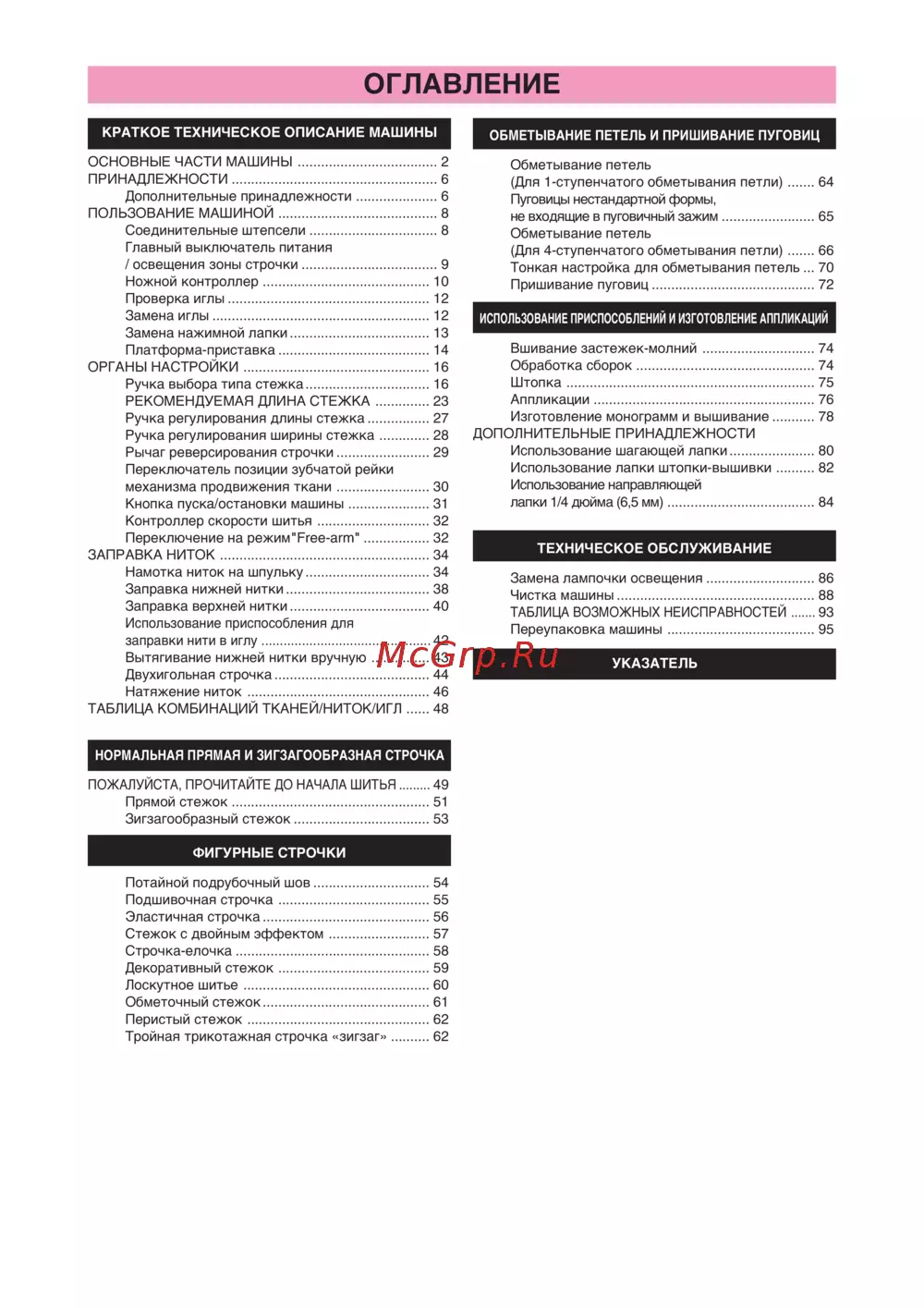 - Обрыв нижней нитки обрыв верхней нитки p.105