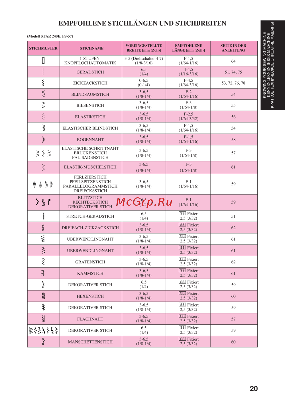 Brother Boutique 27 [32/111] Empfohlene stichlängen und stichbreiten