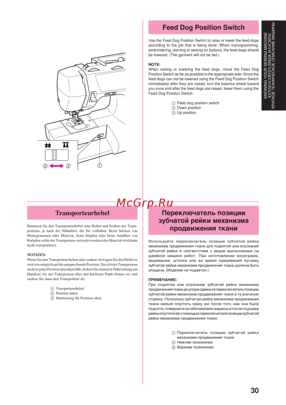 Узнайте, как правильно использовать переключатели швейной машины для управления зубчатой рейкой и транспортёром. Подробные инструкции и советы по шитью.