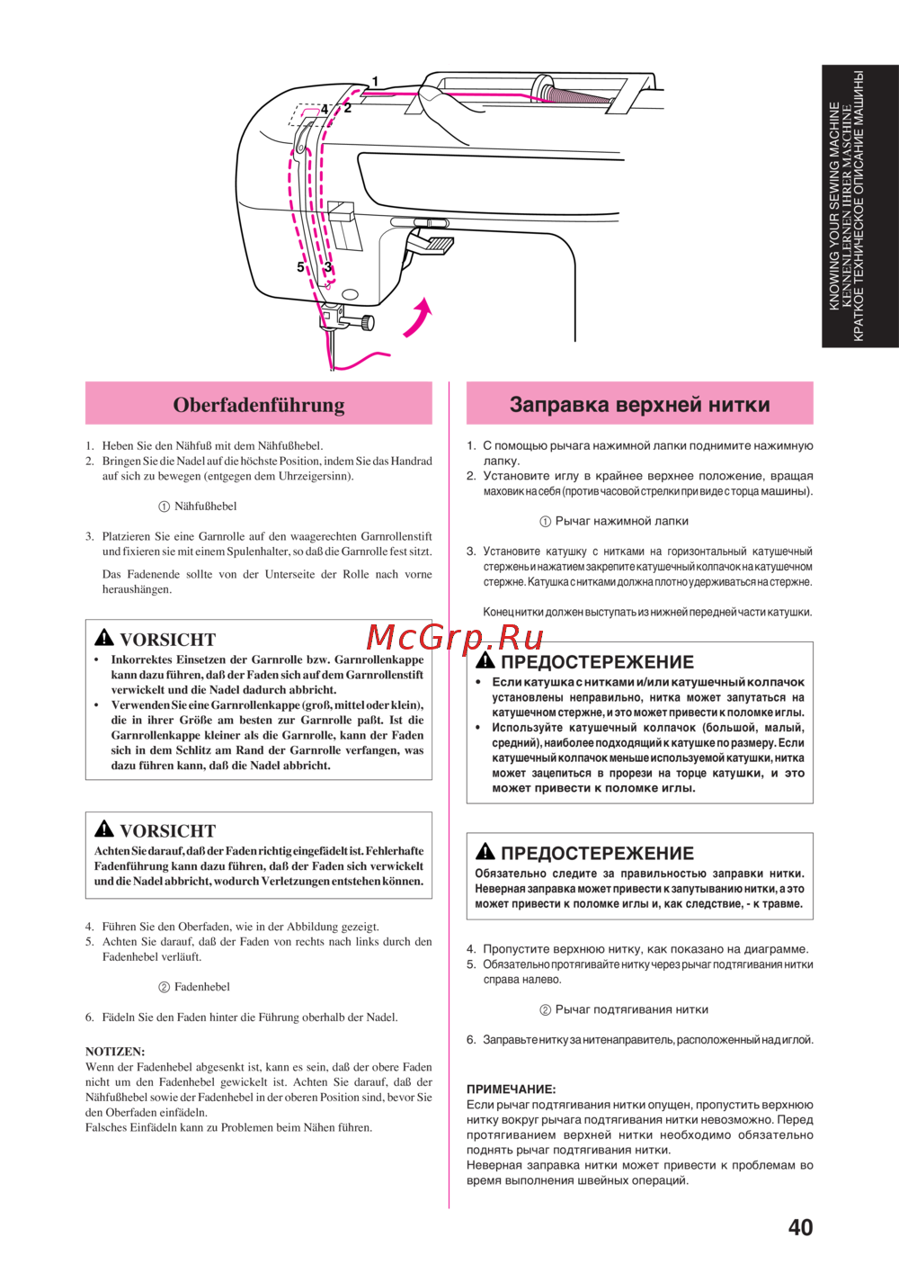 нитку вокруг рычага подтягивания нитки невозможно. Перед