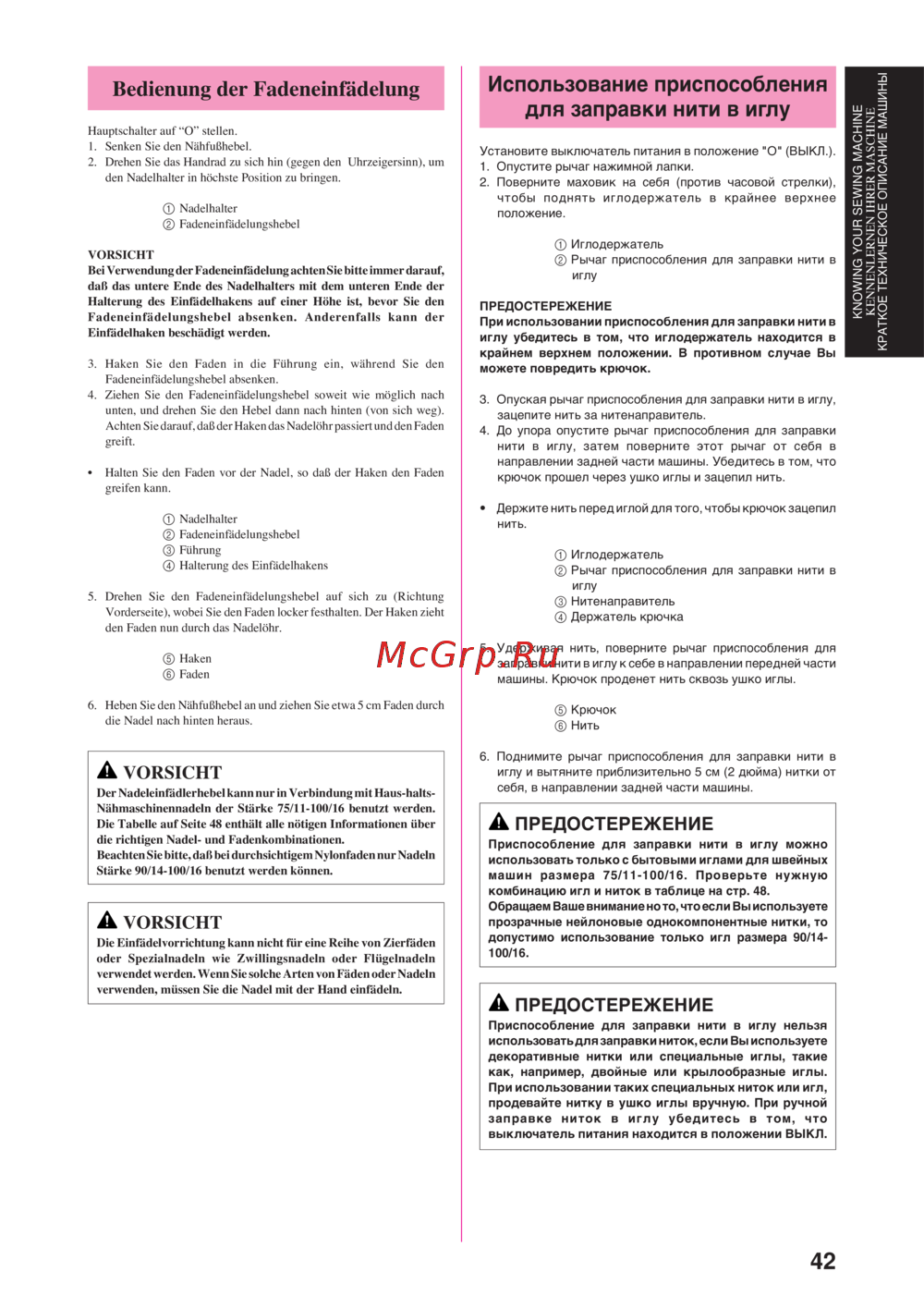 Bei Verwendung der Fadeneinfädelung achten Sie bitte immer darauf,