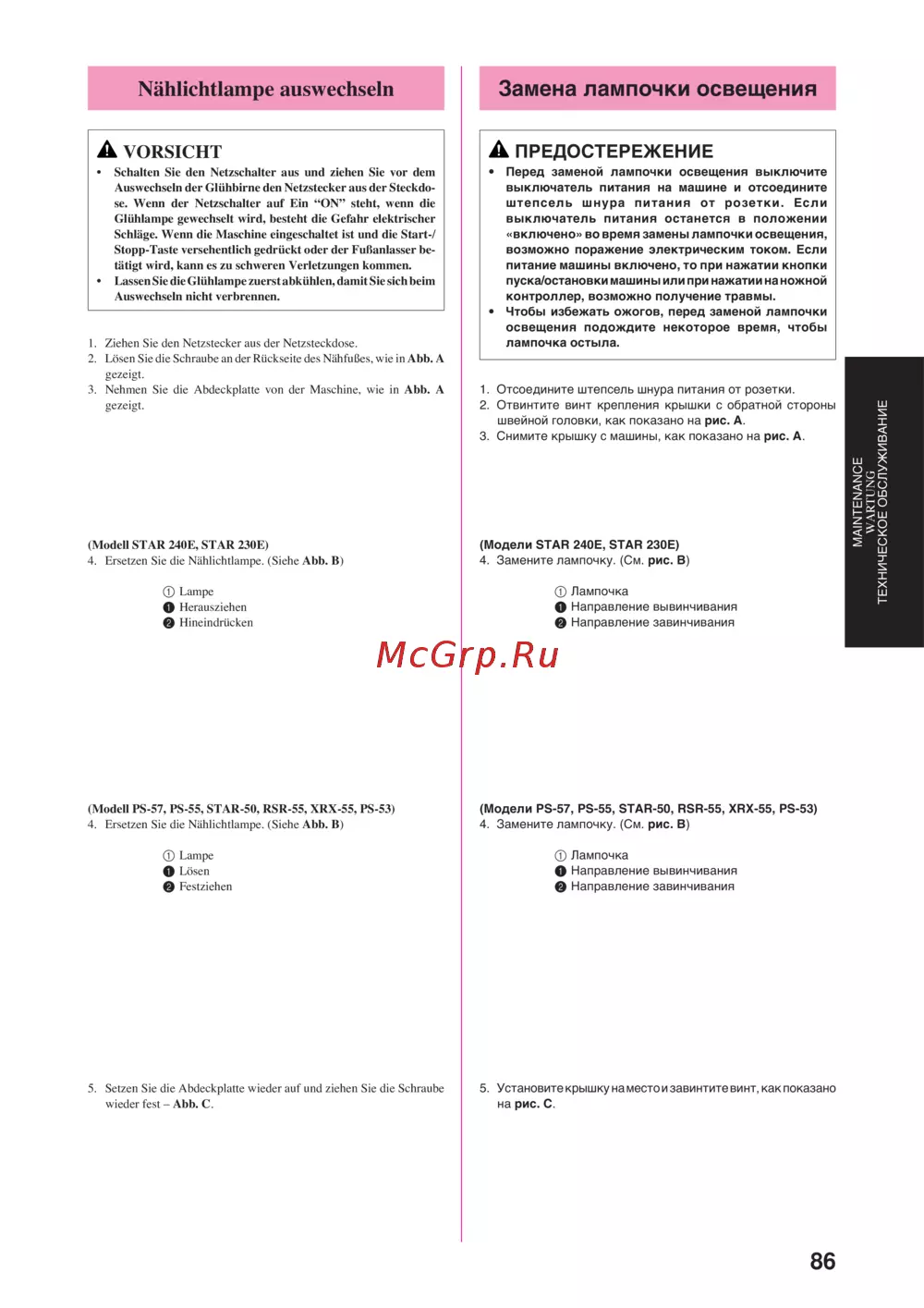 Узнайте, как безопасно заменить лампочку освещения в швейной машине. Следуйте пошаговым инструкциям и соблюдайте меры предосторожности для предотвращения травм.