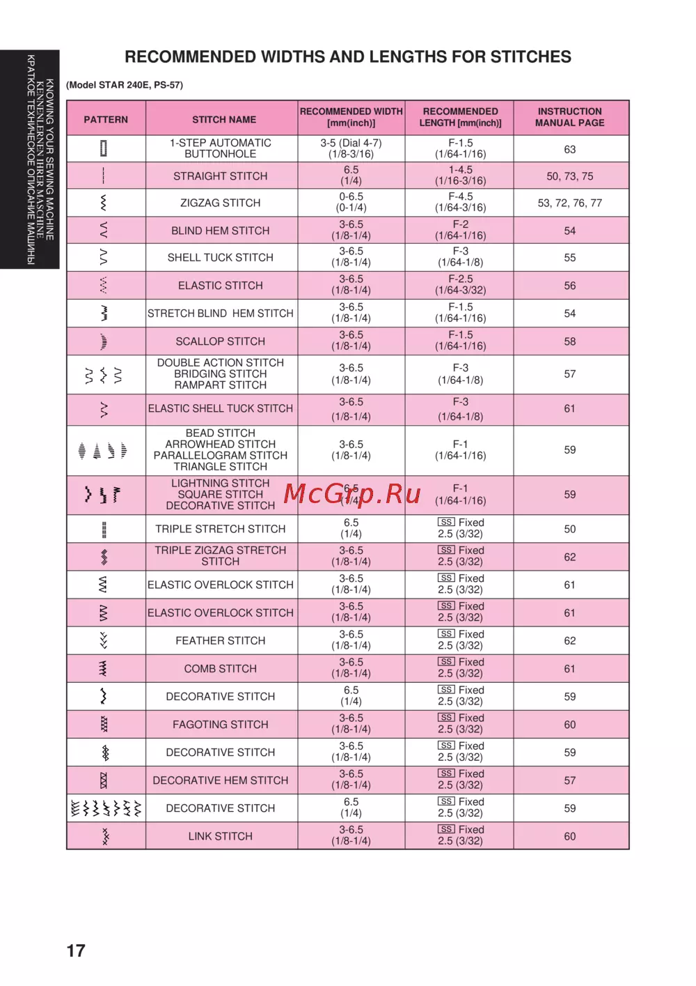 Brother Boutique 37 [11/111] Recommended widths and lengths for stitches