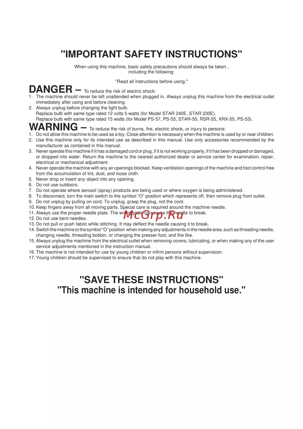 Следуйте основным инструкциям по безопасности при использовании машины. Обеспечьте безопасность, избегая электрических ударов и травм. Читайте руководство перед использованием.
