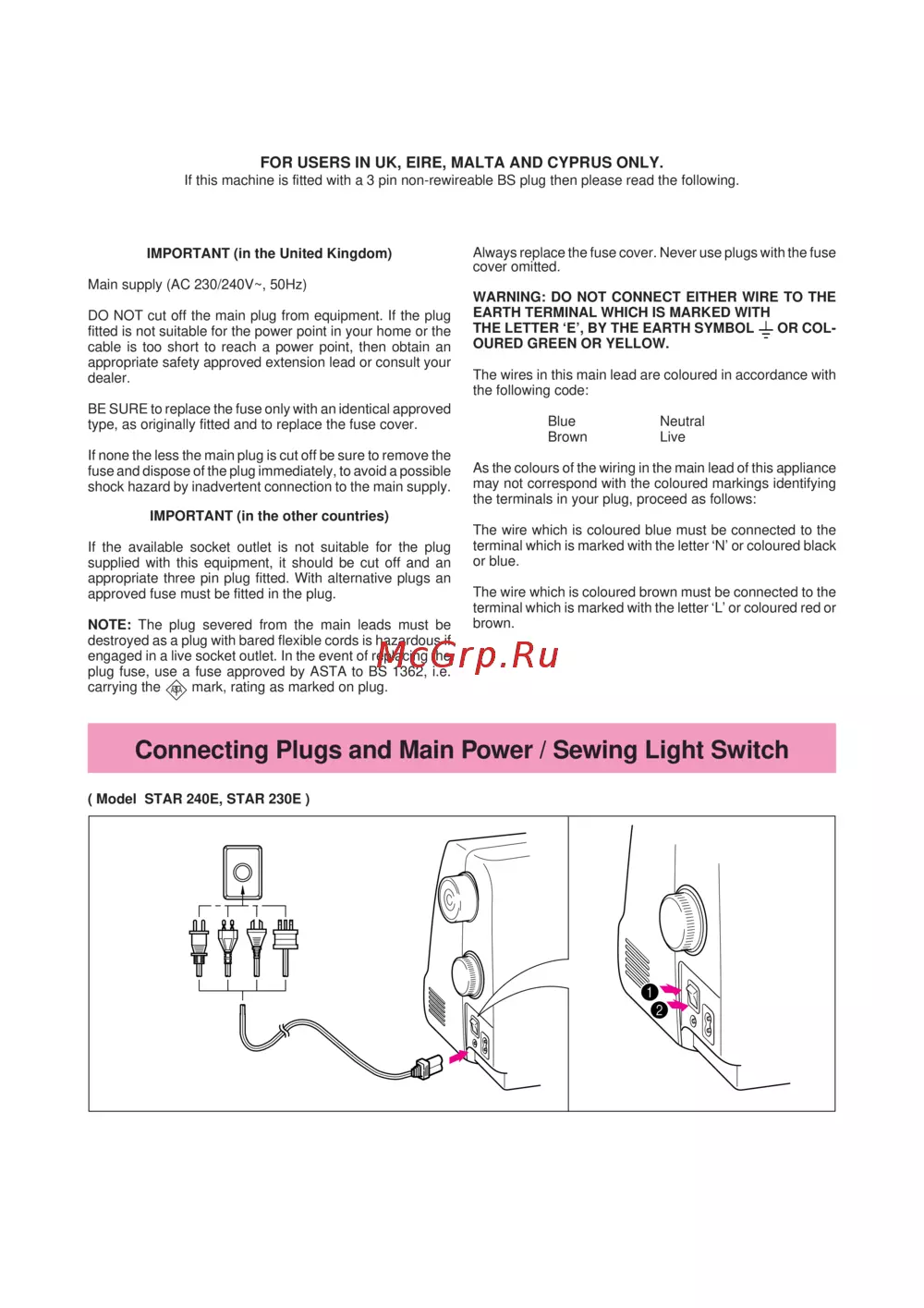 If this machine is fitted with a 3 pin non-rewireable BS plug then please read the following.