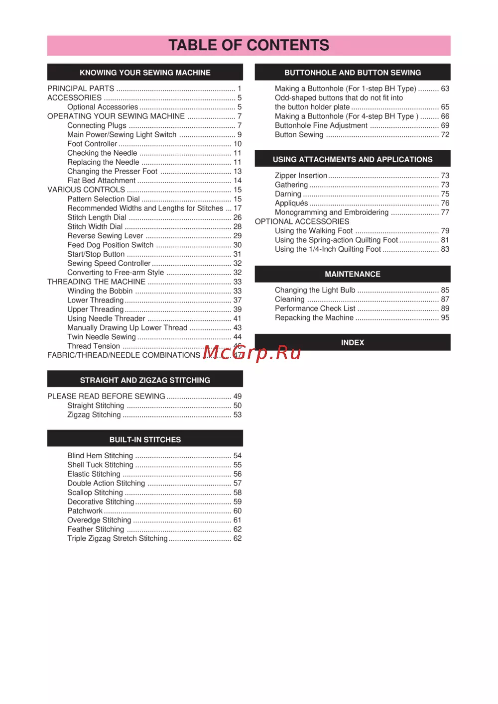 Blind Hem Stitching .............................................. 54