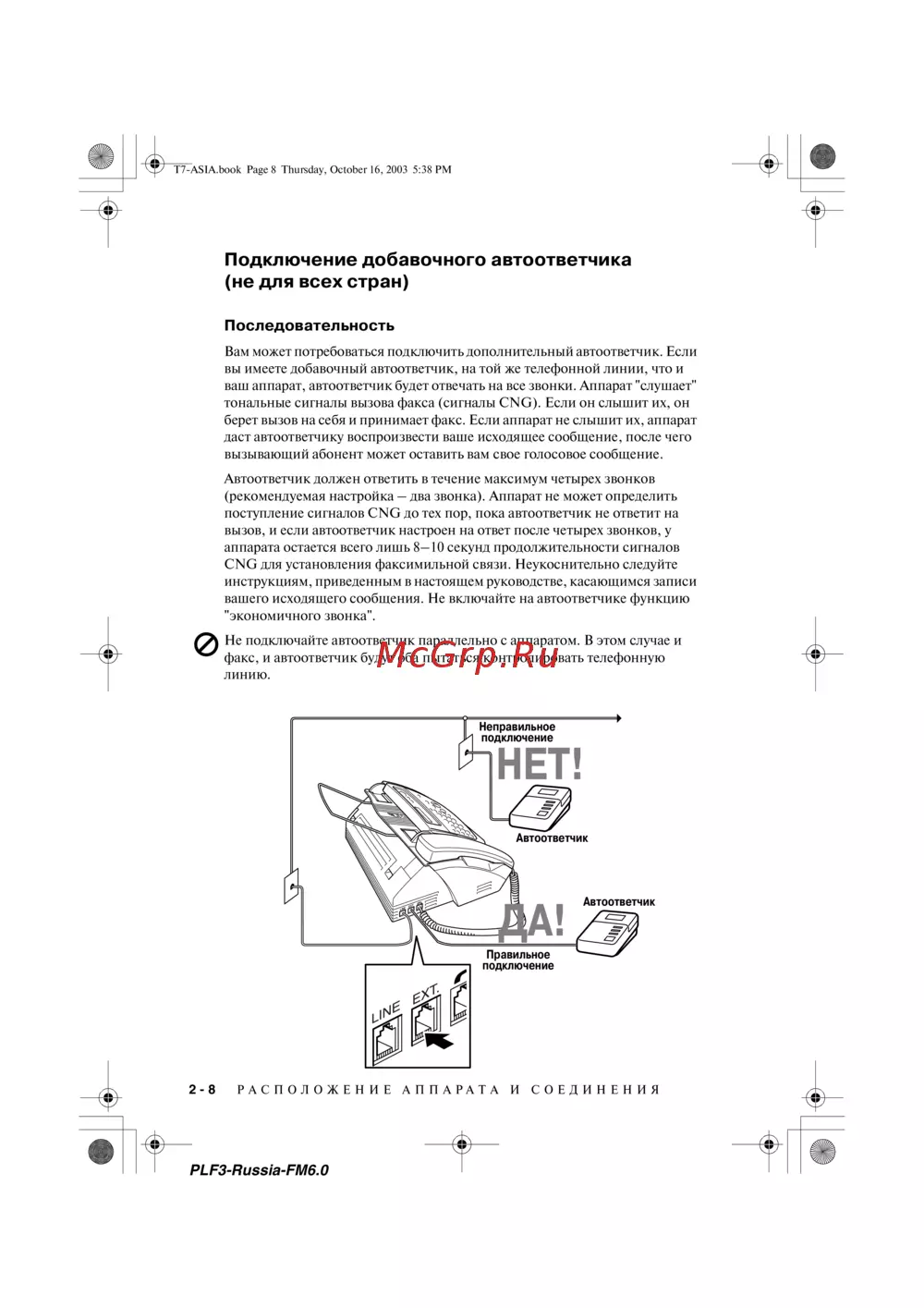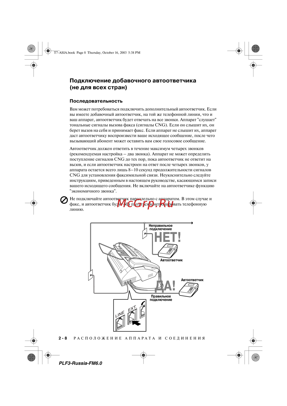 Brother FAX-236 — подключение автоответчика к факсимильному аппарату: инструкция [22/110]