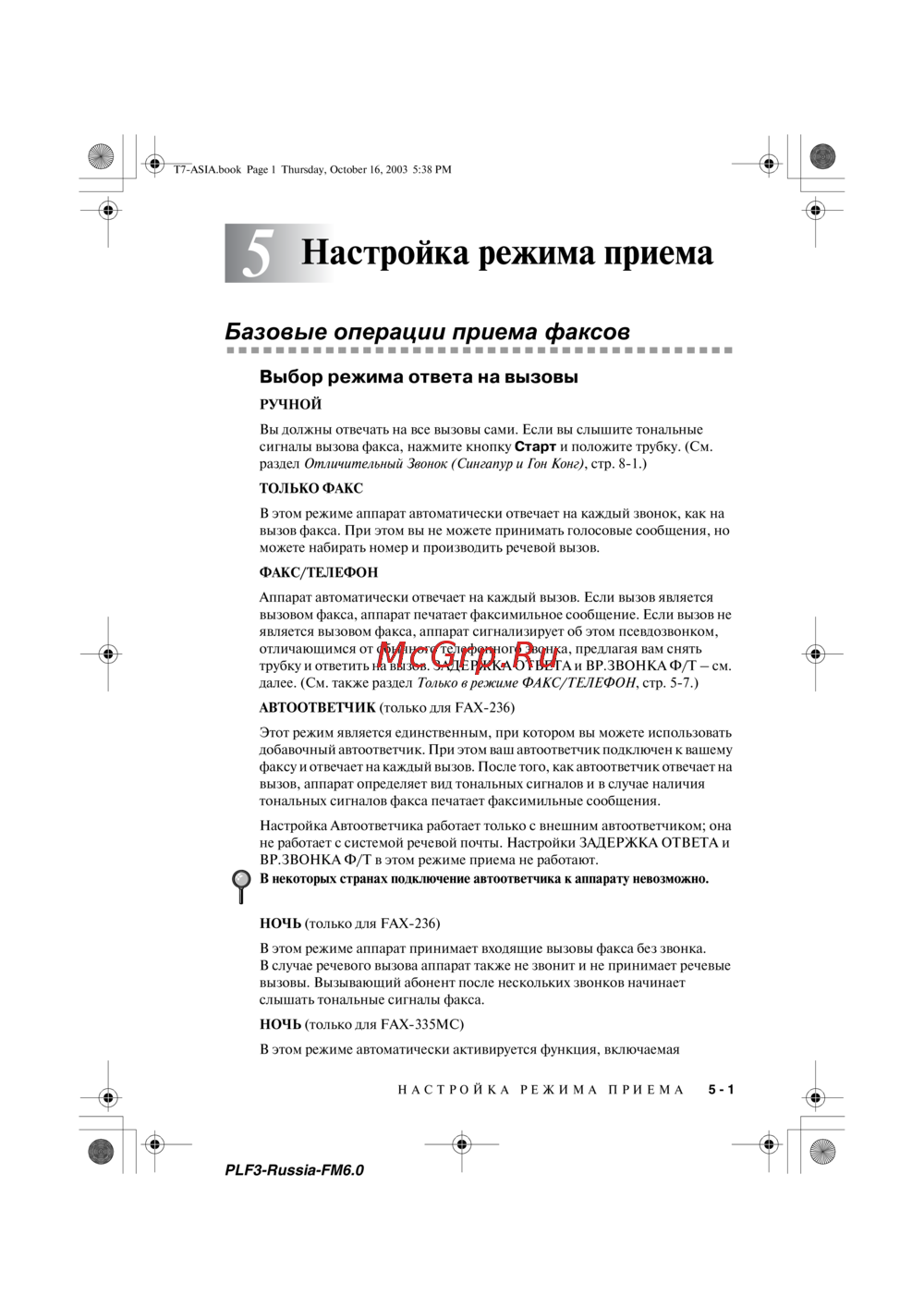 Brother FAX-236 — настройка режима приема факсов: основные операции и советы [39/110]