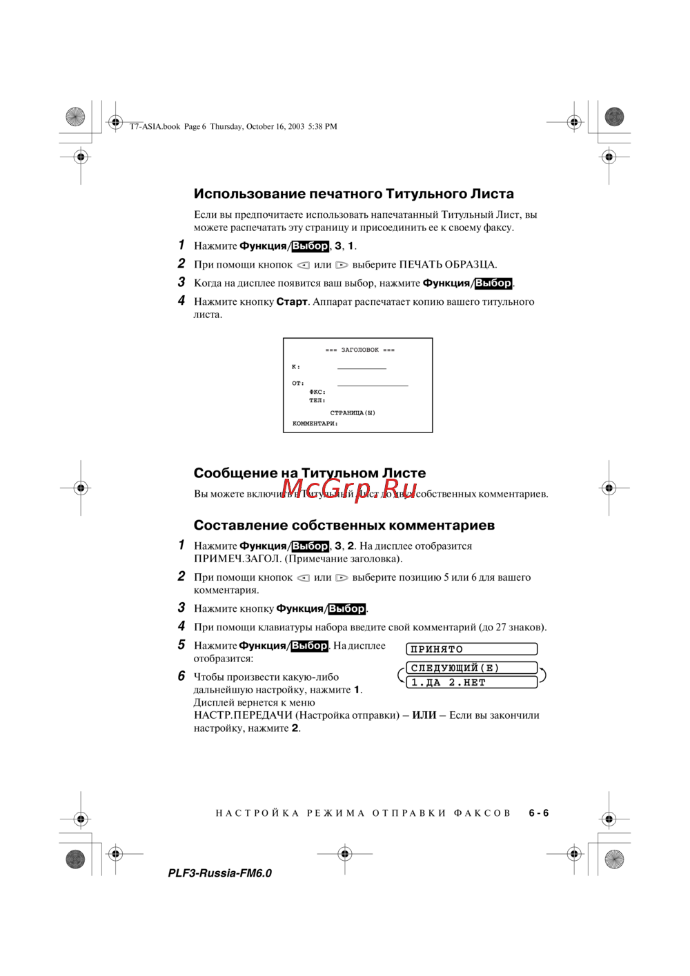 - Использование кода дистанционного доступа к считыванию сообщений только для fax 335mc p.106