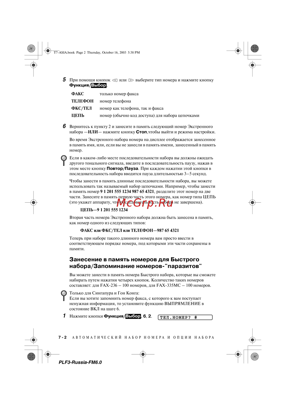 составляет: для FAX236 – 100 номеров, для FAX335MC – 100 номеров.