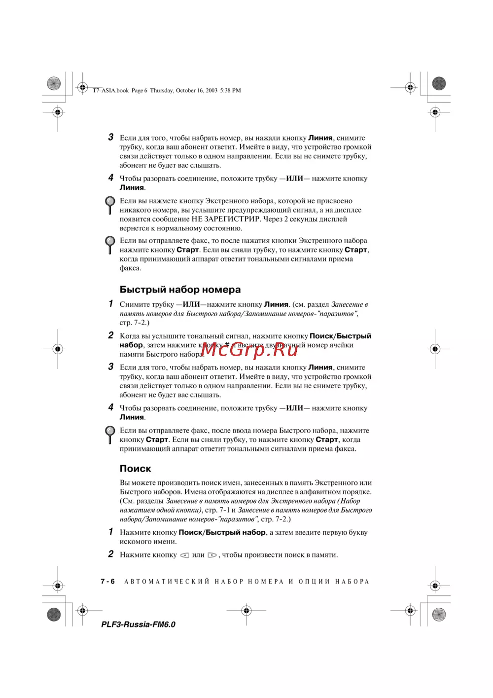 - Использование кода дистанционного доступа к считыванию сообщений только для fax 335mc p.106