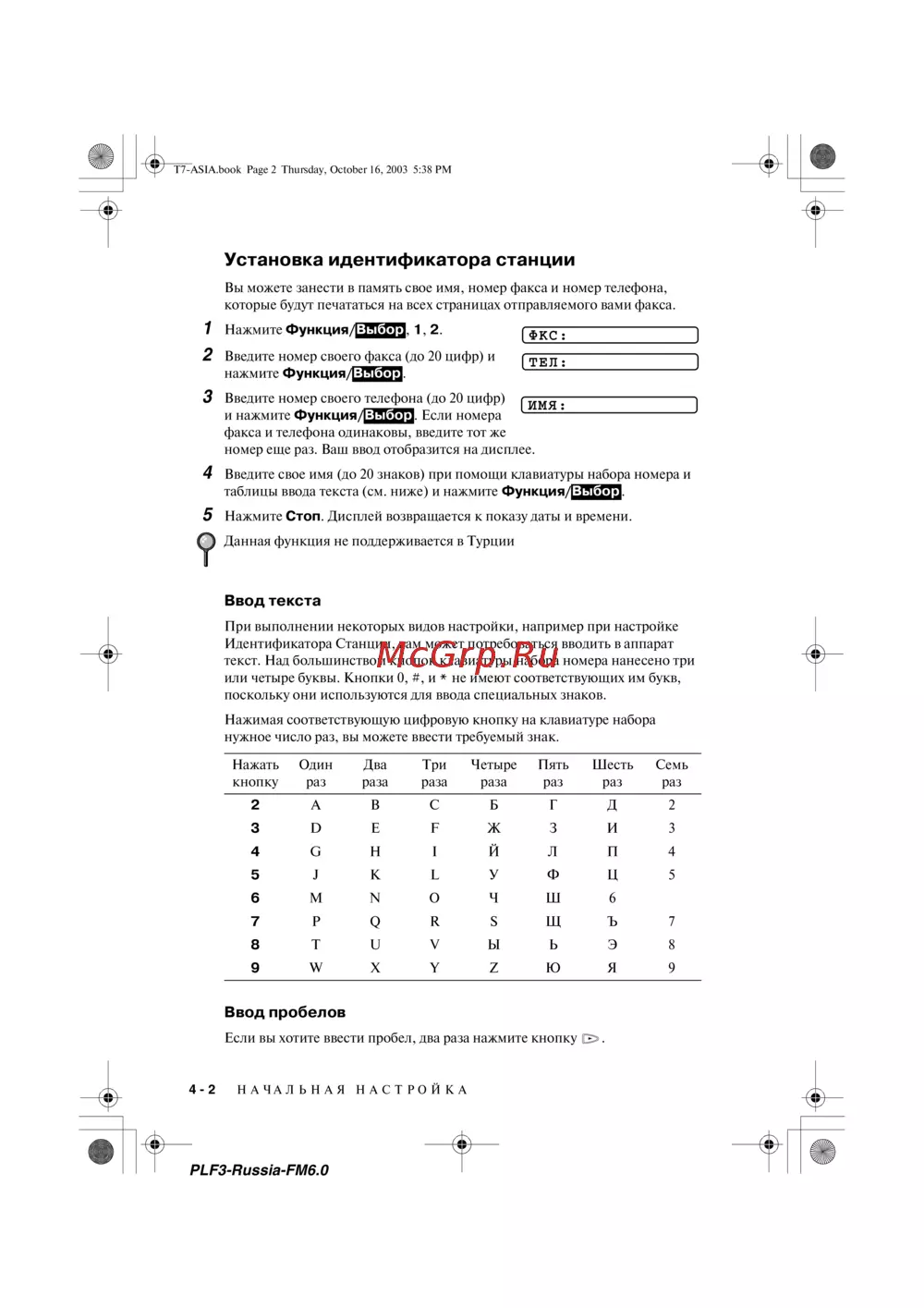 Идентификатора Станции, вам может потребоваться вводить в аппарат