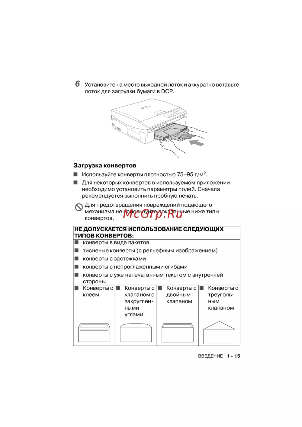 Brother DCP-110C — рекомендации по загрузке бумаги и конвертов в печатающее устройство [29/122]