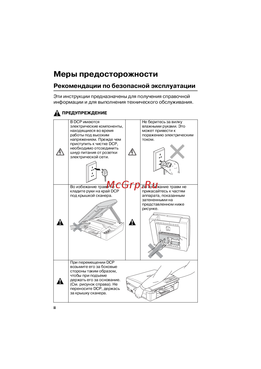 Brother DCP-110C — рекомендации по безопасной эксплуатации электрических устройств [4/122]