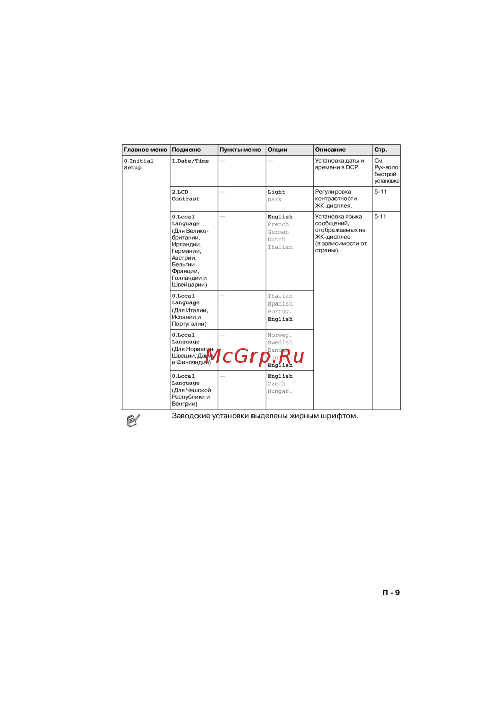 ![Brother DCP-310CN [105/122] Заводские установки выделены жирным шрифтом](/views2/1025554/page105/bg69.png)