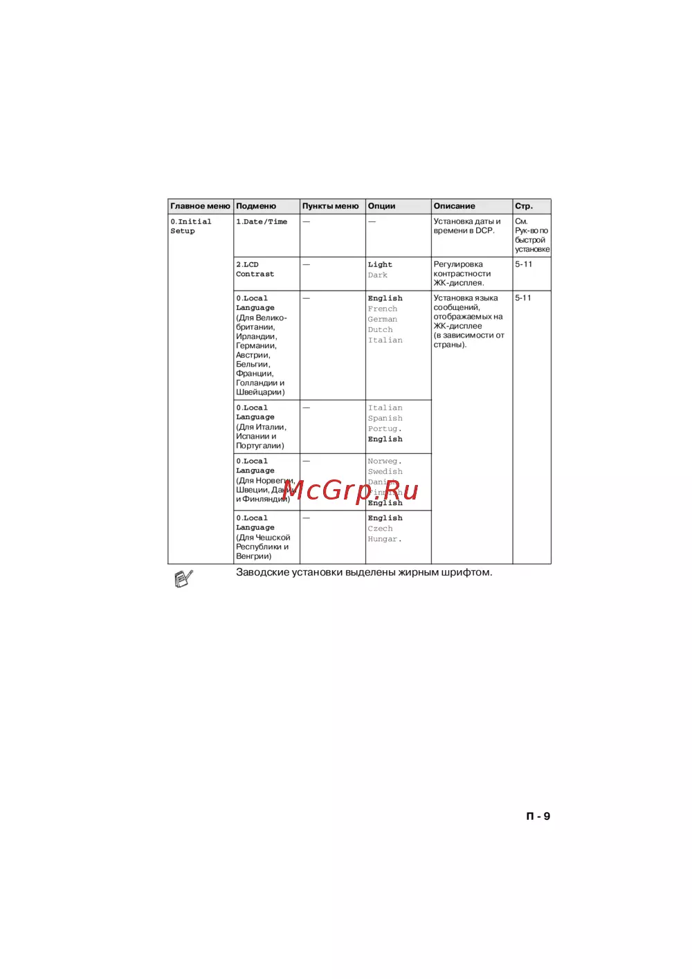 Brother DCP-310CN — настройка даты и времени, контрастности ЖК-дисплея и языка [105/122]