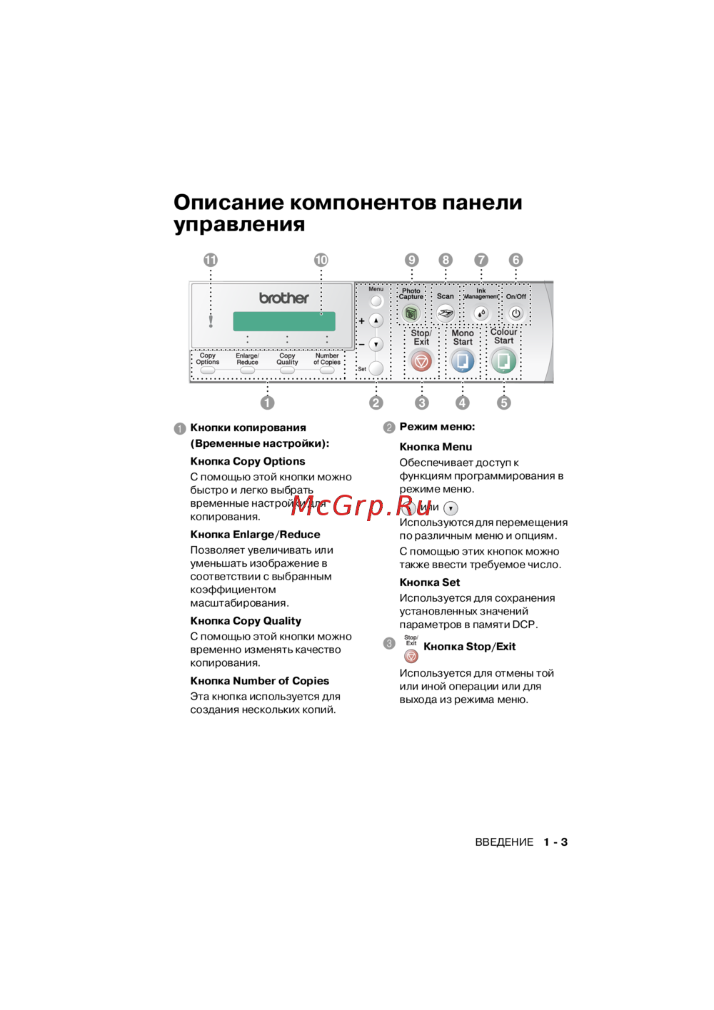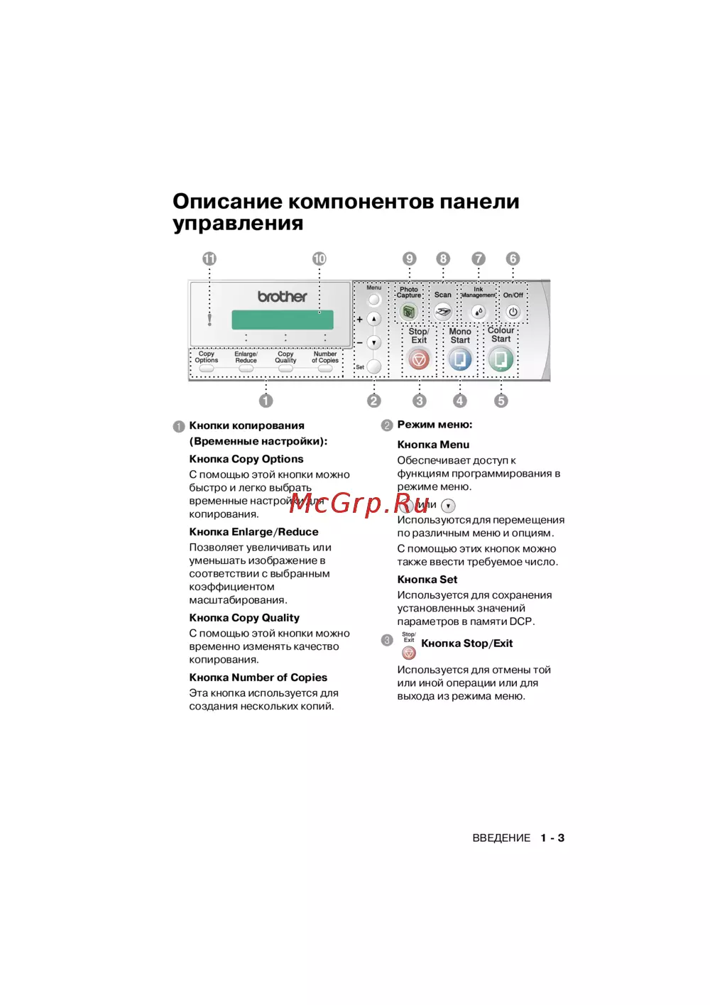 Brother DCP-310CN — обзор компонентов панели управления для копирования [17/122]