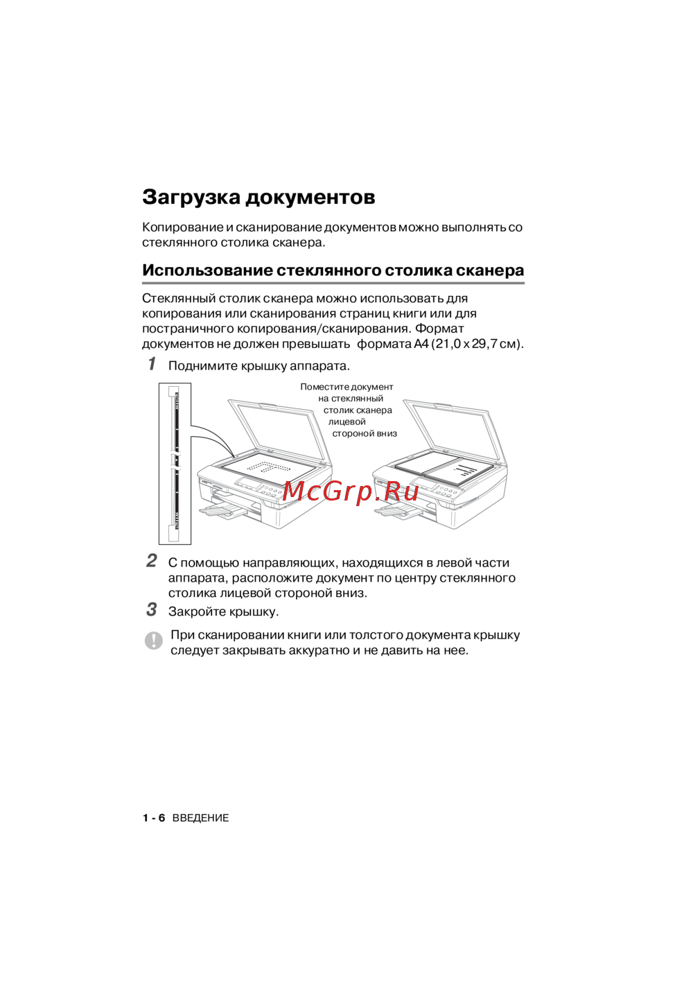 Brother DCP-310CN — как правильно использовать стеклянный столик сканера для документов [20/122]