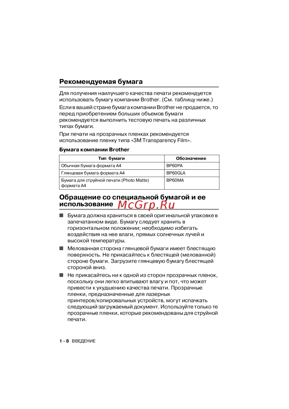 использовать бумагу компании Brother. (См. таблицу ниже.)