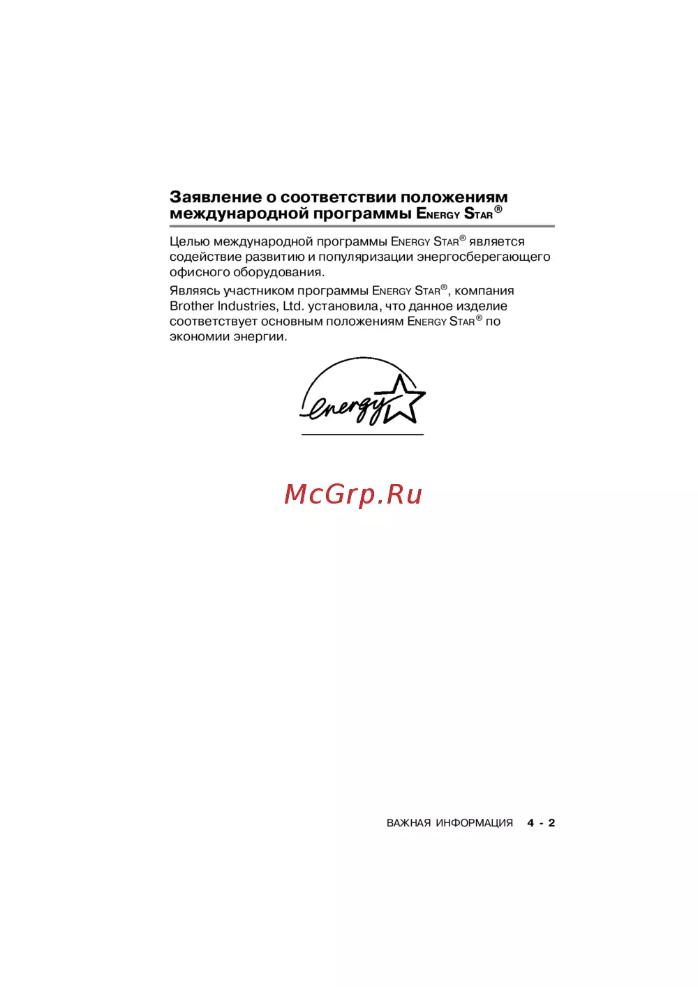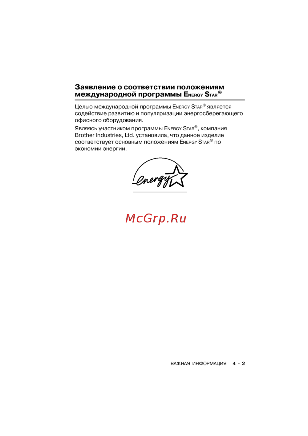 Brother DCP-310CN [65/122] Заявление о соответствии положениям международной программы
